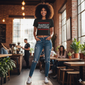 This crop top is made of 100% combed cotton, which makes the shirt extremely soft and more durable than regular cotton shirts. The relaxed fit and dropped shoulders ensure comfortable wear, while the cropped length makes it perfect for spring and summer.